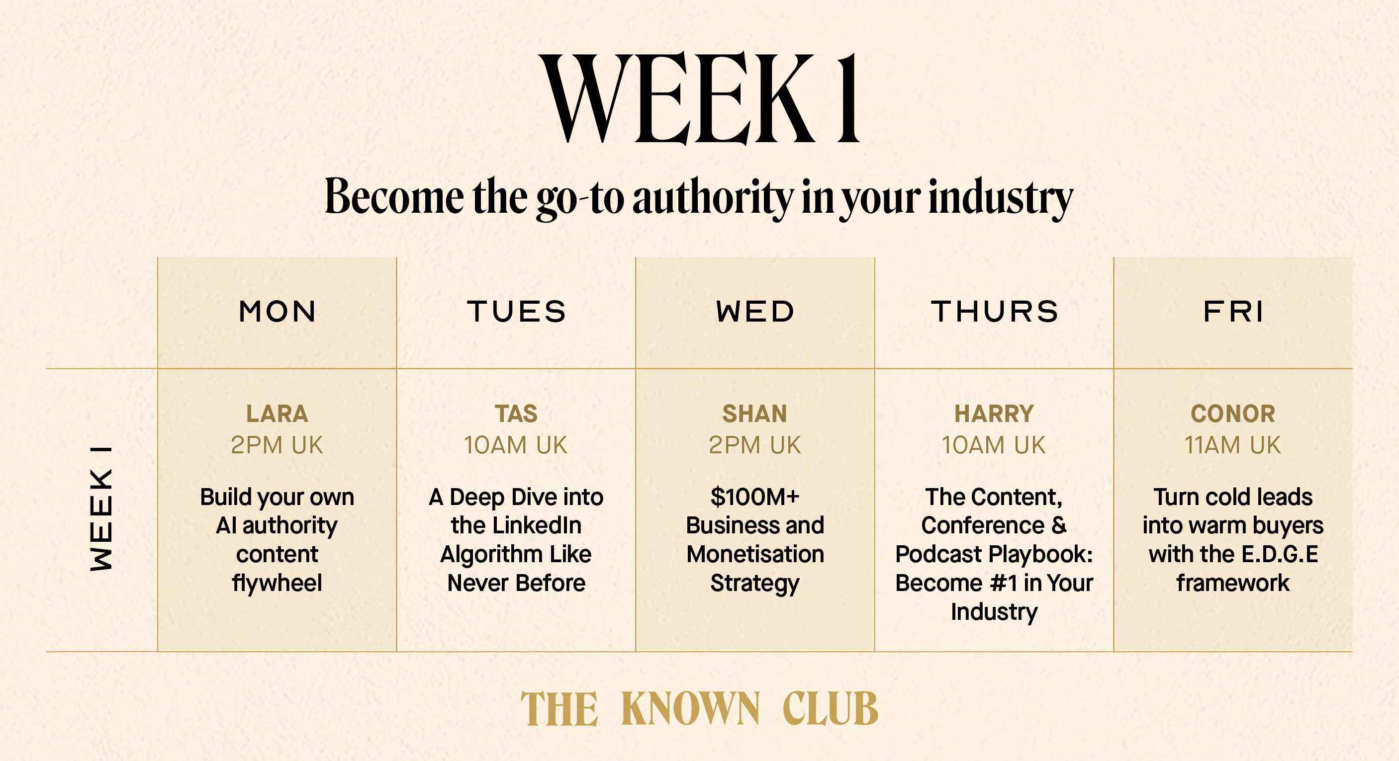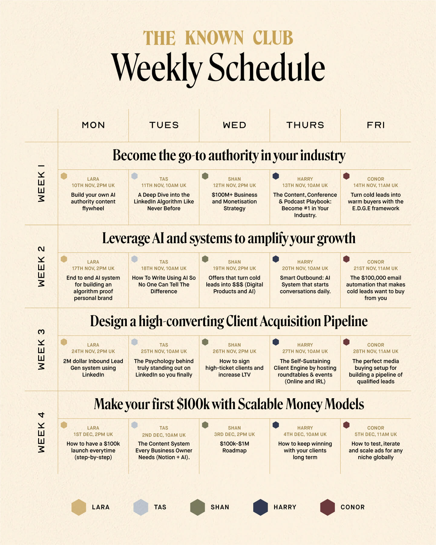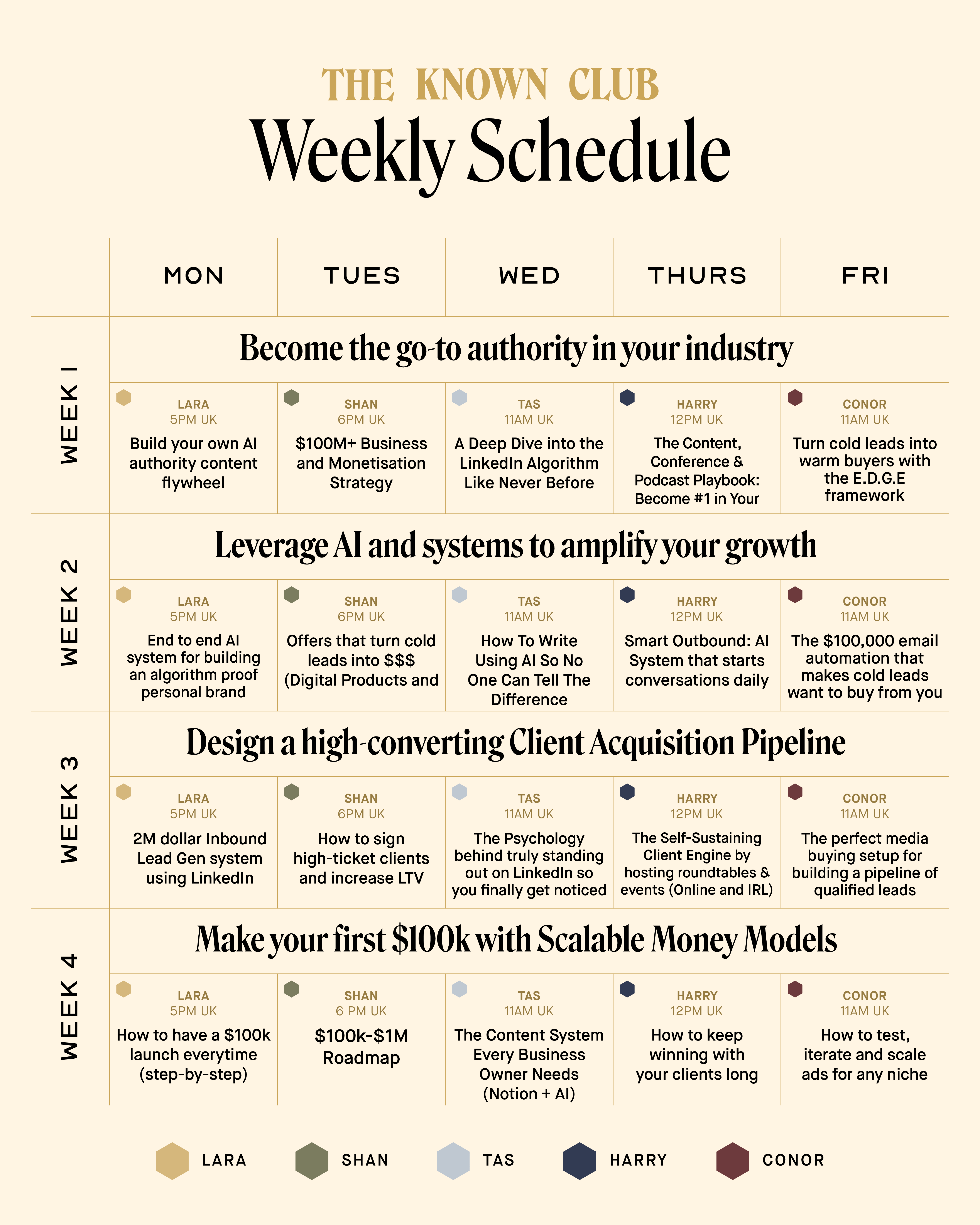 5 calls per week. 20 calls over 4 weeks. You'll leave knowing exactly how to position, attract and scale your personal brand in record time - with AI doing the heavy lifting for you.