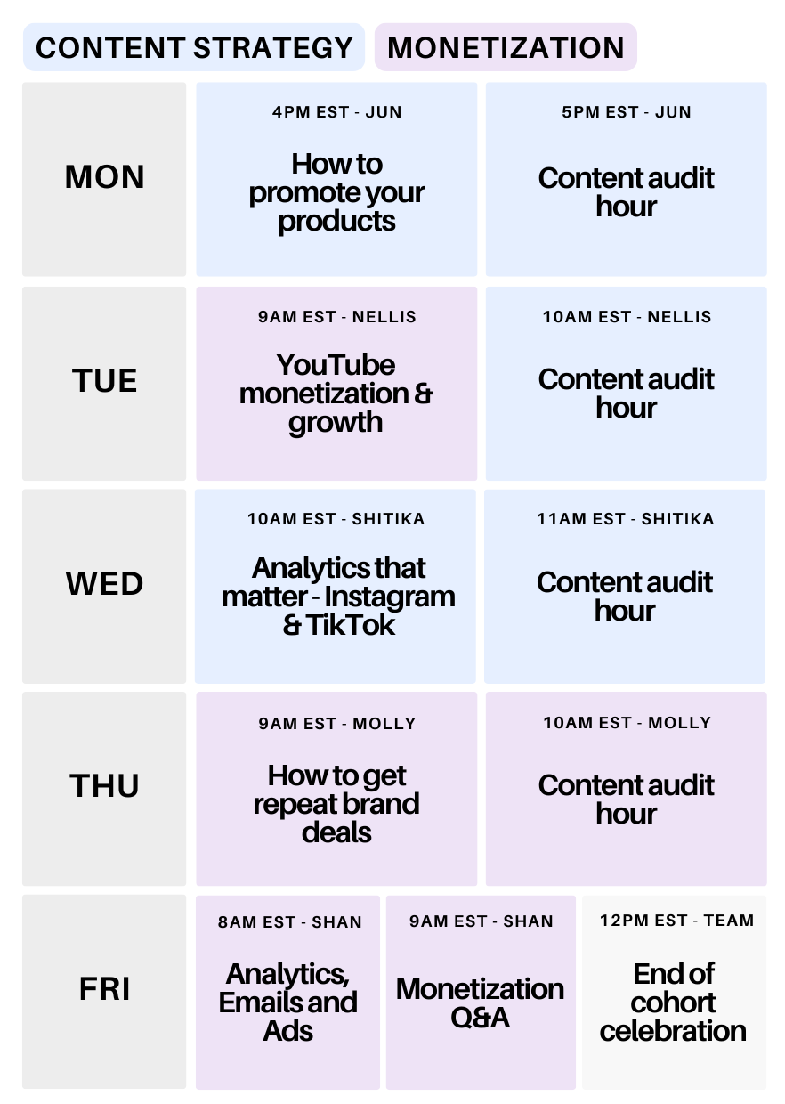 This is the most intensive cohort we’ve ever done. You’ll have DAILY lessons from 6,7, and 8 figure entrepreneurs showing you how to install a bulletproof client acquisition and monetisation system in just 4 weeks.