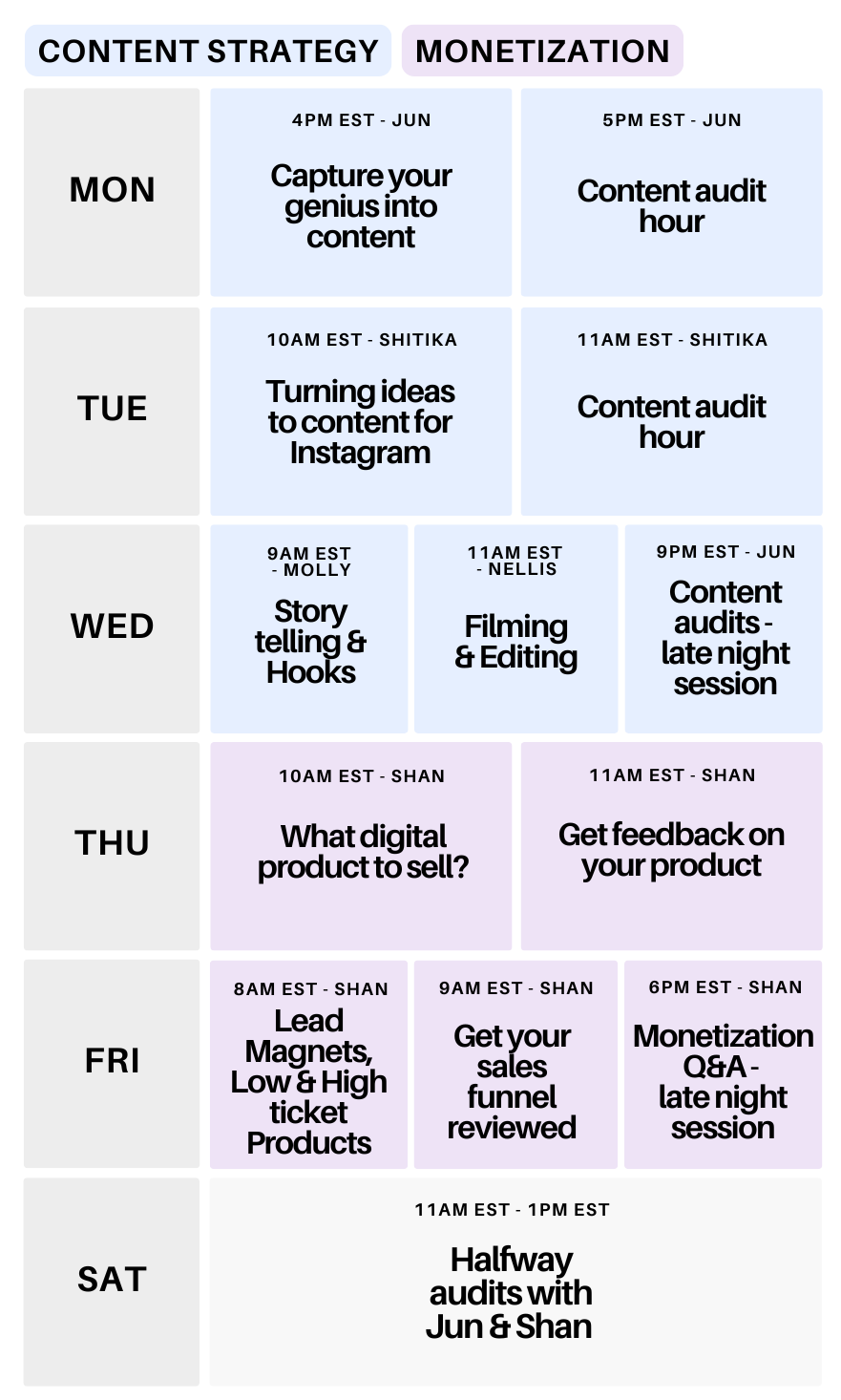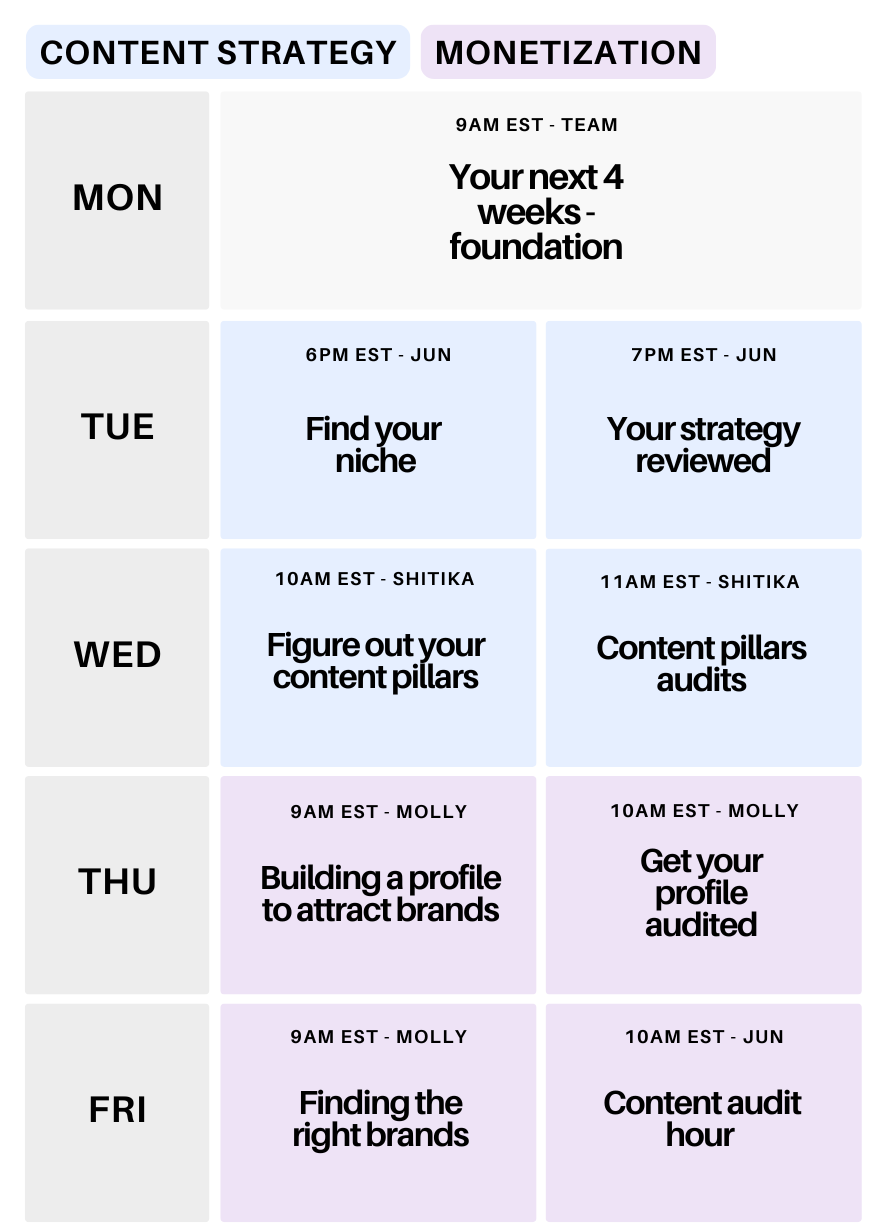 (1) You get daily live coaching with personalised feedback on YOUR content and strategy from leading experts who’ve walked your path,