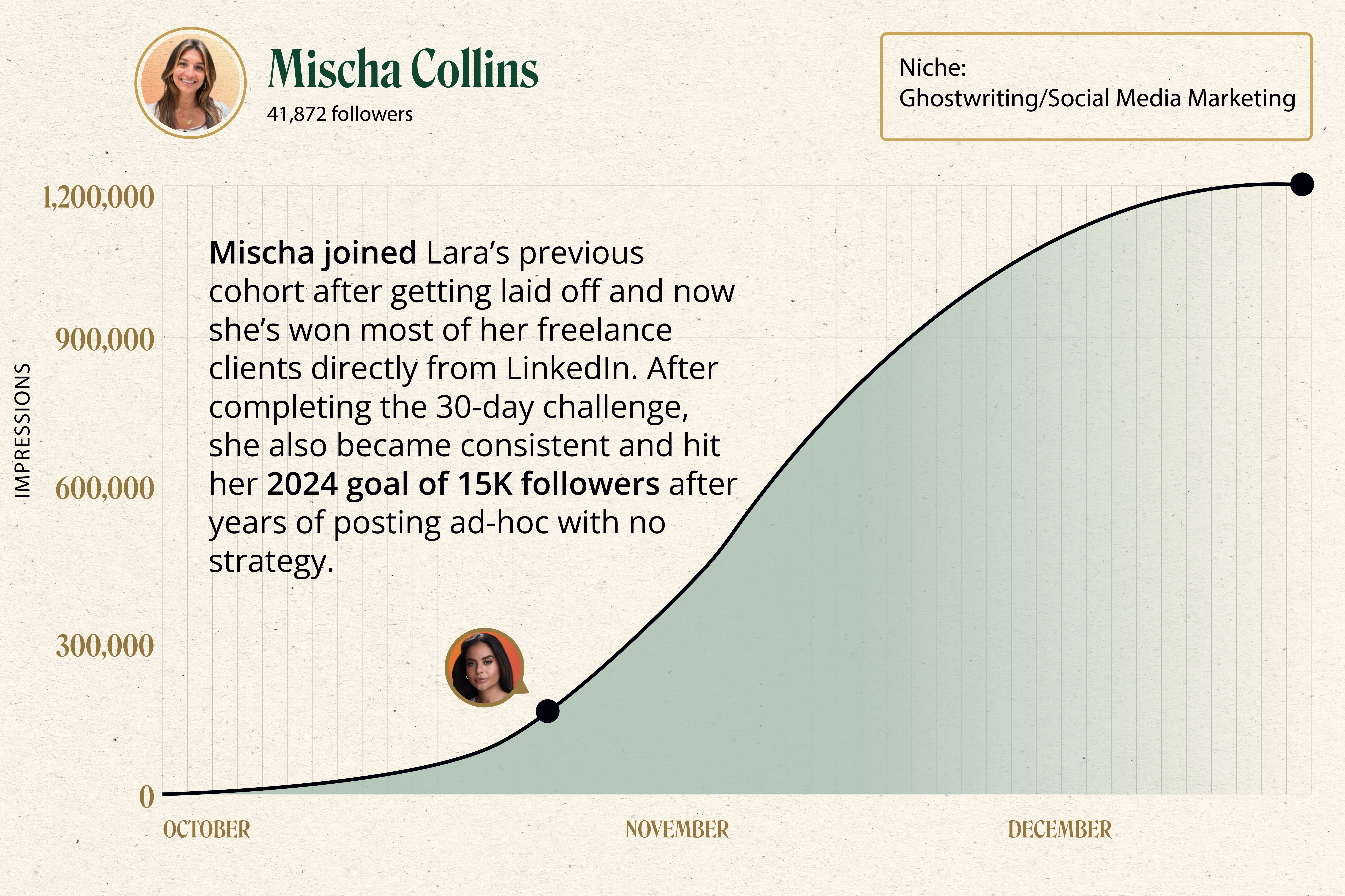 Lara's cohort dramatically improved my copywriting skills, teaching rock-solid content creation for sustainable growth. Achieved 11.4k impressions and attracted big-name attention. Highly recommend!